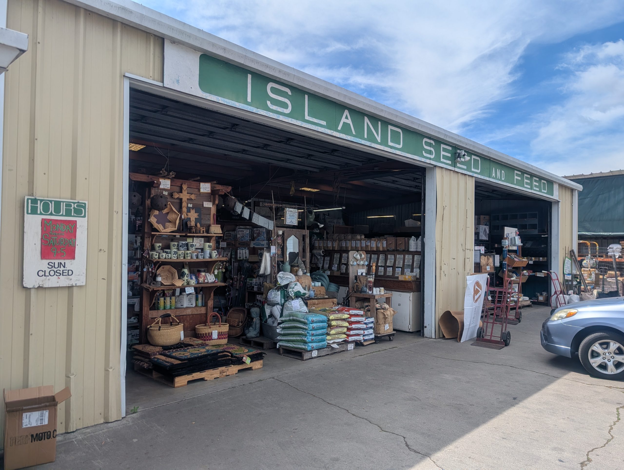 Vale la pena detenerse si conduce por la autopista 101 del sur de California. El letrero puede estar oculto por arbustos demasiado grandes (lo entiendo), pero puede encontrar todo lo que necesita para su operación de jardinería en Island Seed and Feed.