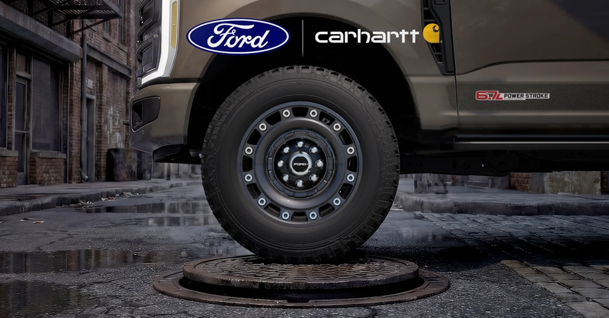 “Muchos de los detalles del vehículo se inspiraron en una visita el año pasado de los diseñadores de Ford a la tienda Carhartt en el centro de Detroit”, dijo la compañía. El diseño de las ruedas del camión incluso se inspiró en la tapa de alcantarilla situada fuera de la tienda Carhartt.
