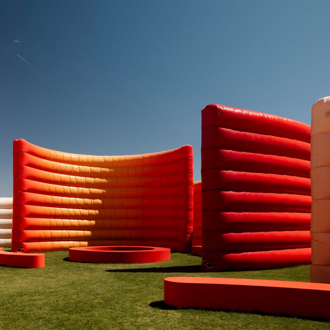 Sabina Marcelis El programa artístico de Coachella de este año presenta hinchado El laberinto presenta grandes tubos de color naranja y amarillo.