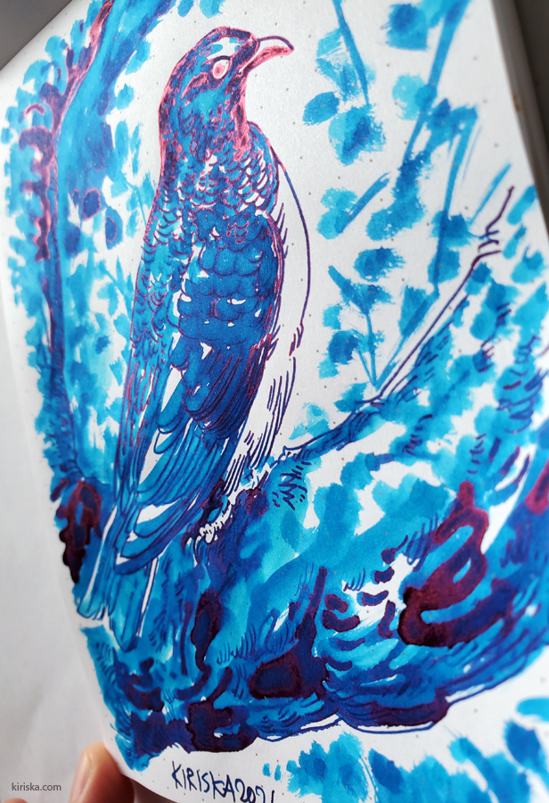No se puede ver con un pincel, e incluso con una pluma, no se puede ver bajo la luz. Creo que no esperé a que la tinta se secara en las líneas antes de rellenar el color con el pincel en el primer martin de arriba, lo que también podría haber afectado las cosas ya que el brillo a veces tarda mucho en salir…