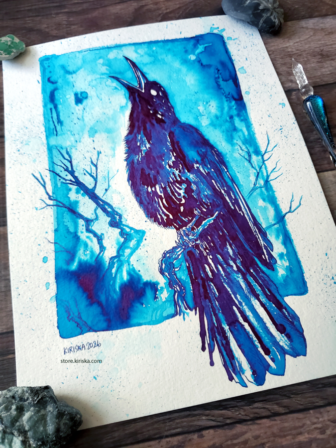 Desafortunadamente, derramé mi botella de muestra de tinta Vinta Kosmos twHielo mientras los prepara. La primera vez, logré aspirar la mayor parte del derrame sobre la mesa con una jeringa y volver a ponerlo en el vial, pero la segunda vez, un montón del derrame empapó mi mantel y mis manos y no quedó casi nada para salvar. El vial de muestra es tan liviano que se vuelca fácilmente… Me queda aproximadamente 1 ml y es posible que pida una botella llena de Kosmos en algún momento, tengo toneladas de otras tintas para usar…
