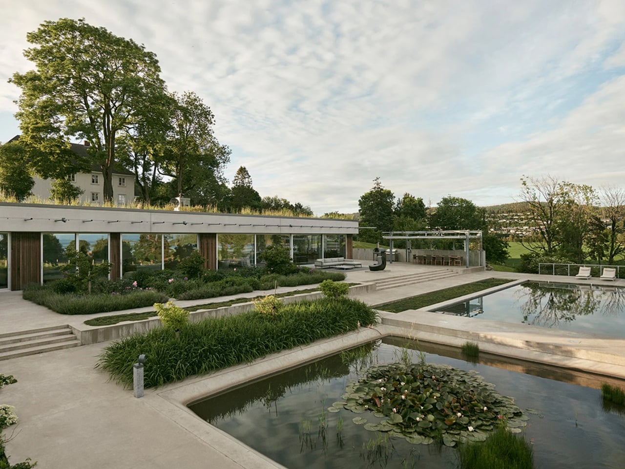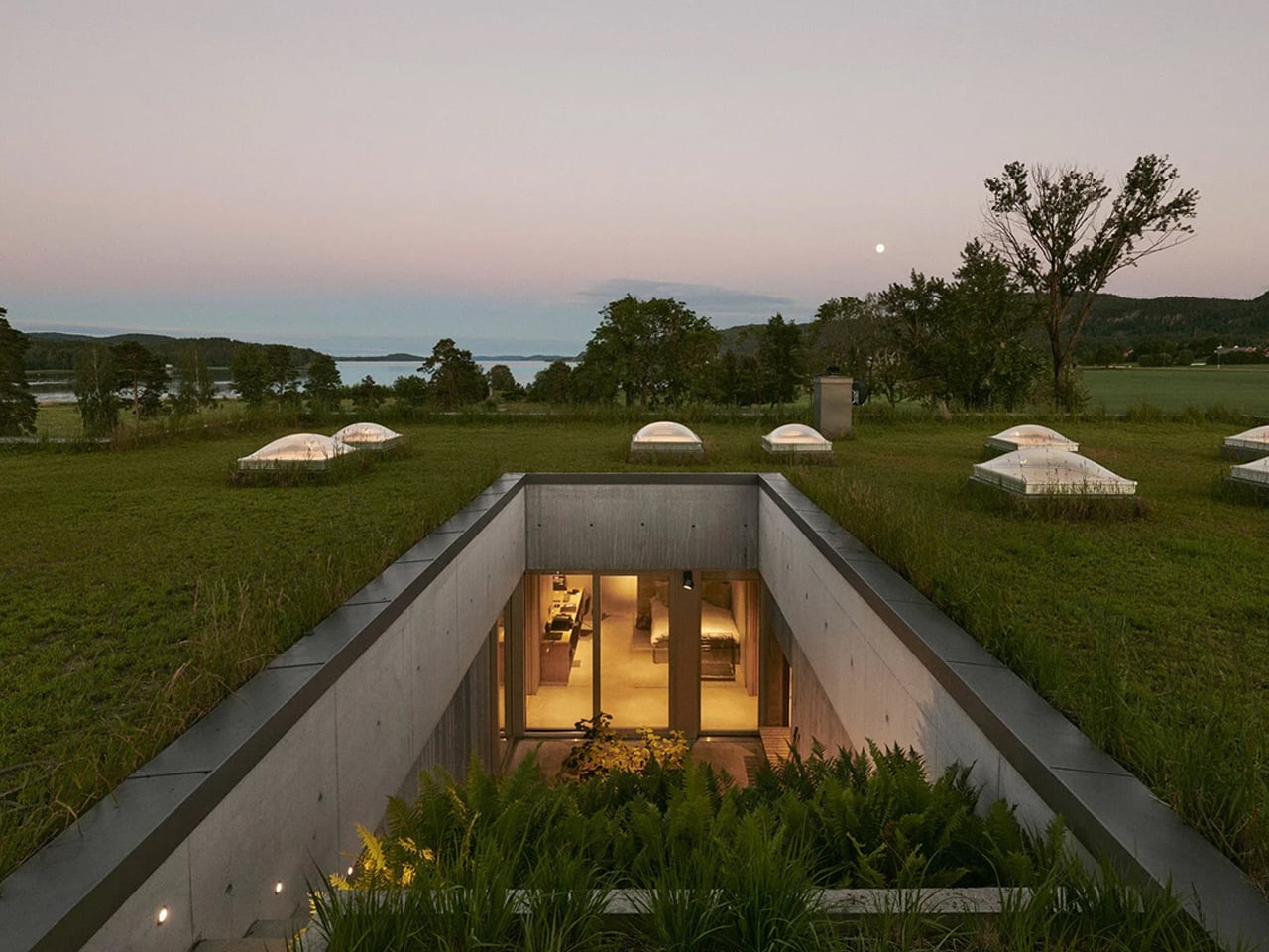 Villa Aa es una casa de campo biofílica en Noruega que muestra cómo la arquitectura puede coexistir tranquila y armoniosamente con el entorno natural. Diseñada por CF Møller, la casa se inspira directamente en el paisaje, siguiendo principios arquitectónicos orgánicos en lugar de imponerse a la topografía. Los tejados verdes corren a lo largo de la ladera, permitiendo que la villa se mezcle casi invisiblemente con su entorno. Ubicada dentro de un área protegida cerca del fiordo de Oslo, la residencia responde con sensibilidad a las limitaciones ambientales y regulatorias, asegurando que el paisaje permanezca en gran medida intacto por las generaciones futuras.
