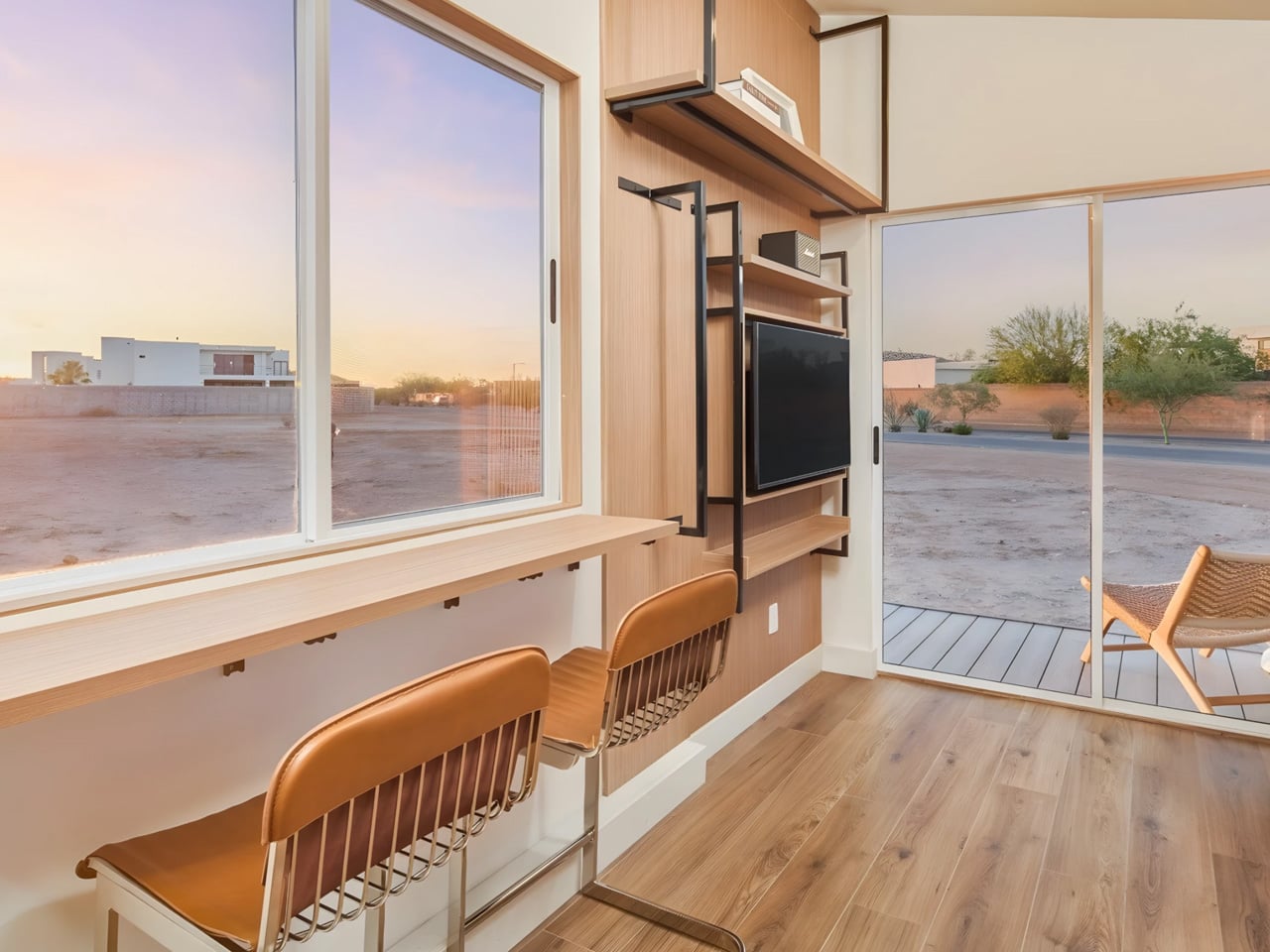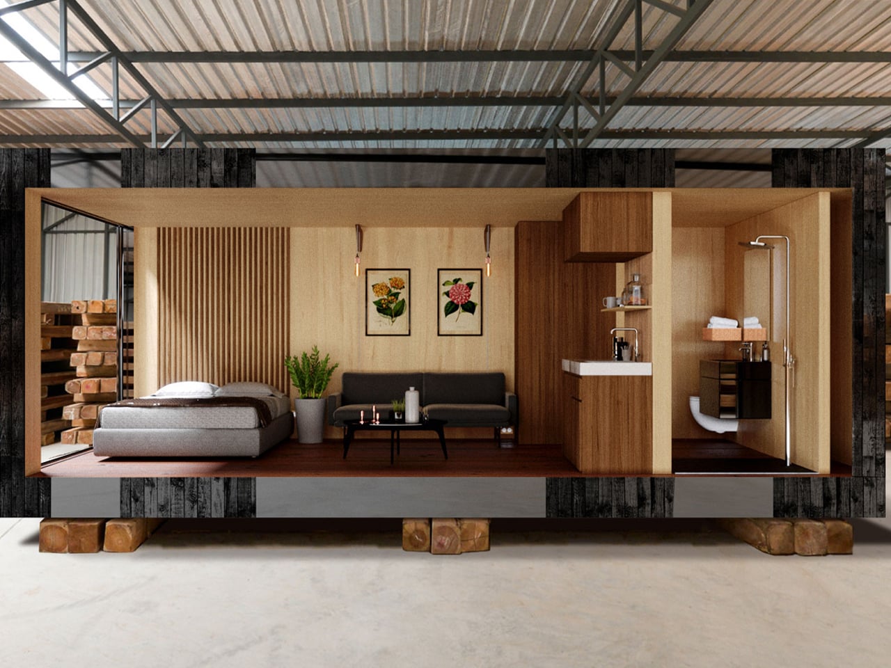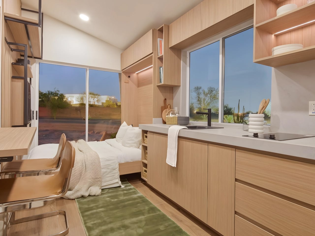 En el interior, un diseño de planta abierta permite que las áreas de vida, dormitorio y trabajo coexistan perfectamente sin sentirse restrictivo. Un escritorio flexible se convierte en una superficie de comedor, mientras que el almacenamiento integrado mantiene la claridad visual. Una cocina compacta pero funcional y un baño tranquilo mejoran aún más el confort diario. El acero galvanizado duradero, el aislamiento total y las opciones de personalización garantizan que la casa pueda adaptarse fácilmente a diferentes climas, lo que convierte a Mizuho en un lugar tranquilo, resistente y bien pensado para vivir.