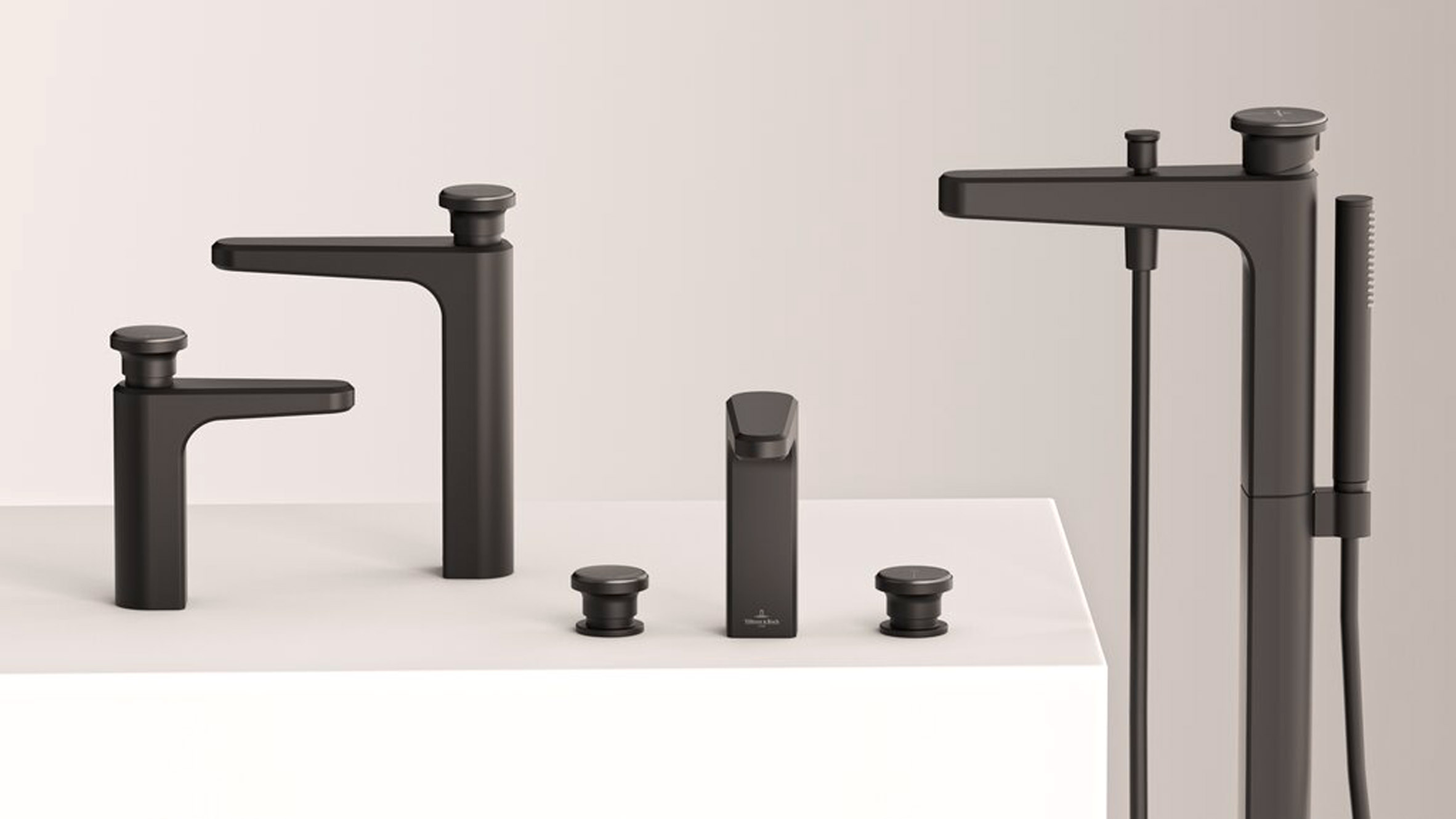 Sala de exposición Dezeen: El diseñador industrial alemán Christian Haas diseñó una serie de grifo del baño para Villeroy & Boch Formas geométricas claras inspiradas en los clásicos. perfume botella.