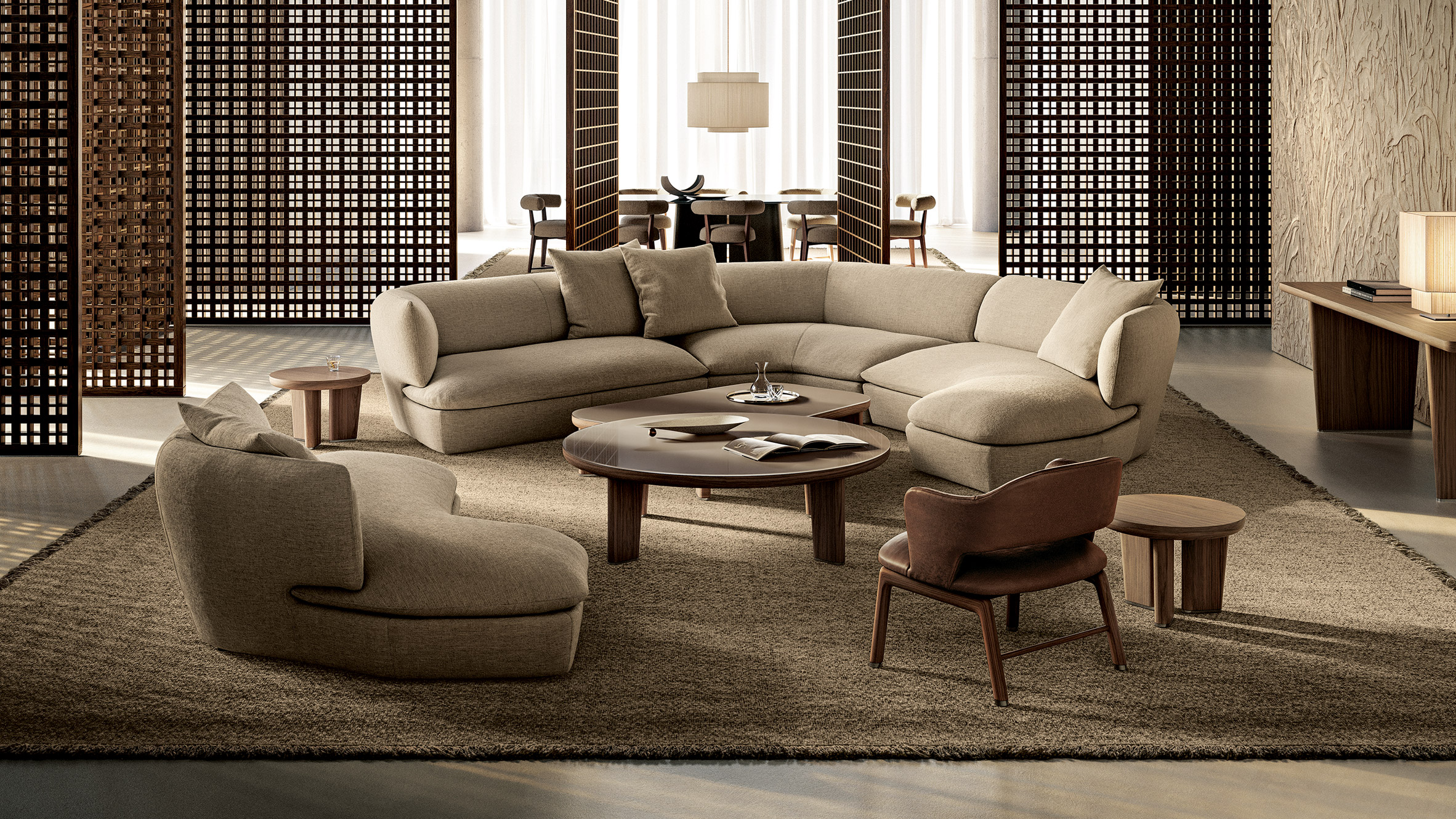 Sala de exposición Dezeen: arquitecto italiano Antonio Citterio Al diseñar tales curvas y envolventes, se rechazaron los ángulos rígidos. sofá Para fabricantes de muebles forma flexible.