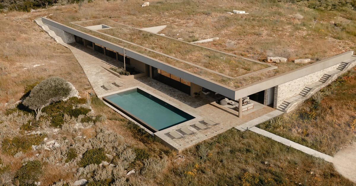 Ateno incorpora una residencia con techo de vegetación en la topografía de Meganesi
