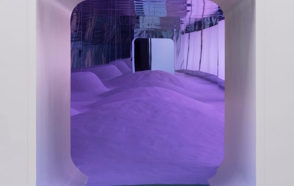 La galería principal del Pabellón de Uzbekistán durante la Semana del Diseño de Milán está definida por una serie de elementos verticales. Delgadas varillas parecidas a cañas se elevan desde el suelo para formar una concha curva que crea habitaciones dentro del volumen más grande. La luz se mantiene baja y cálida, creando una atmósfera densa para la instalación, con los objetos apareciendo gradualmente en lugar de todos a la vez.