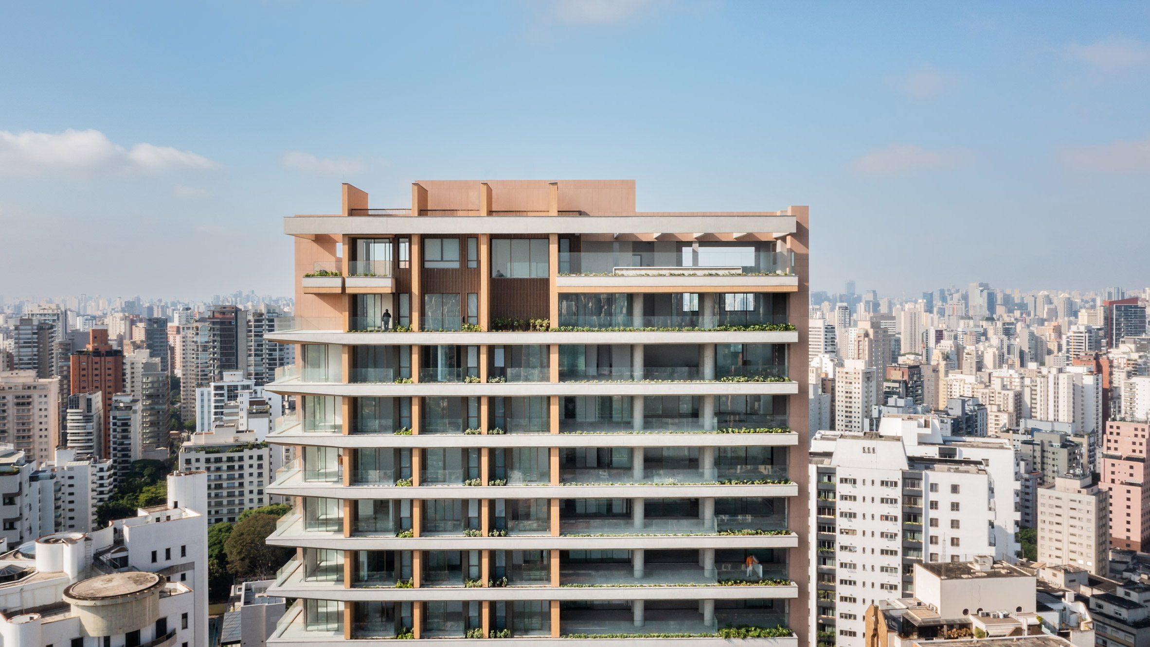 En otras partes de São Paulo, Königsberger Vannucchi Arquitetos Associados completó recientemente el rascacielos más alto de la ciudada pesar de El estudio de arquitectura Triptyque completa una torre envuelta en macetas.