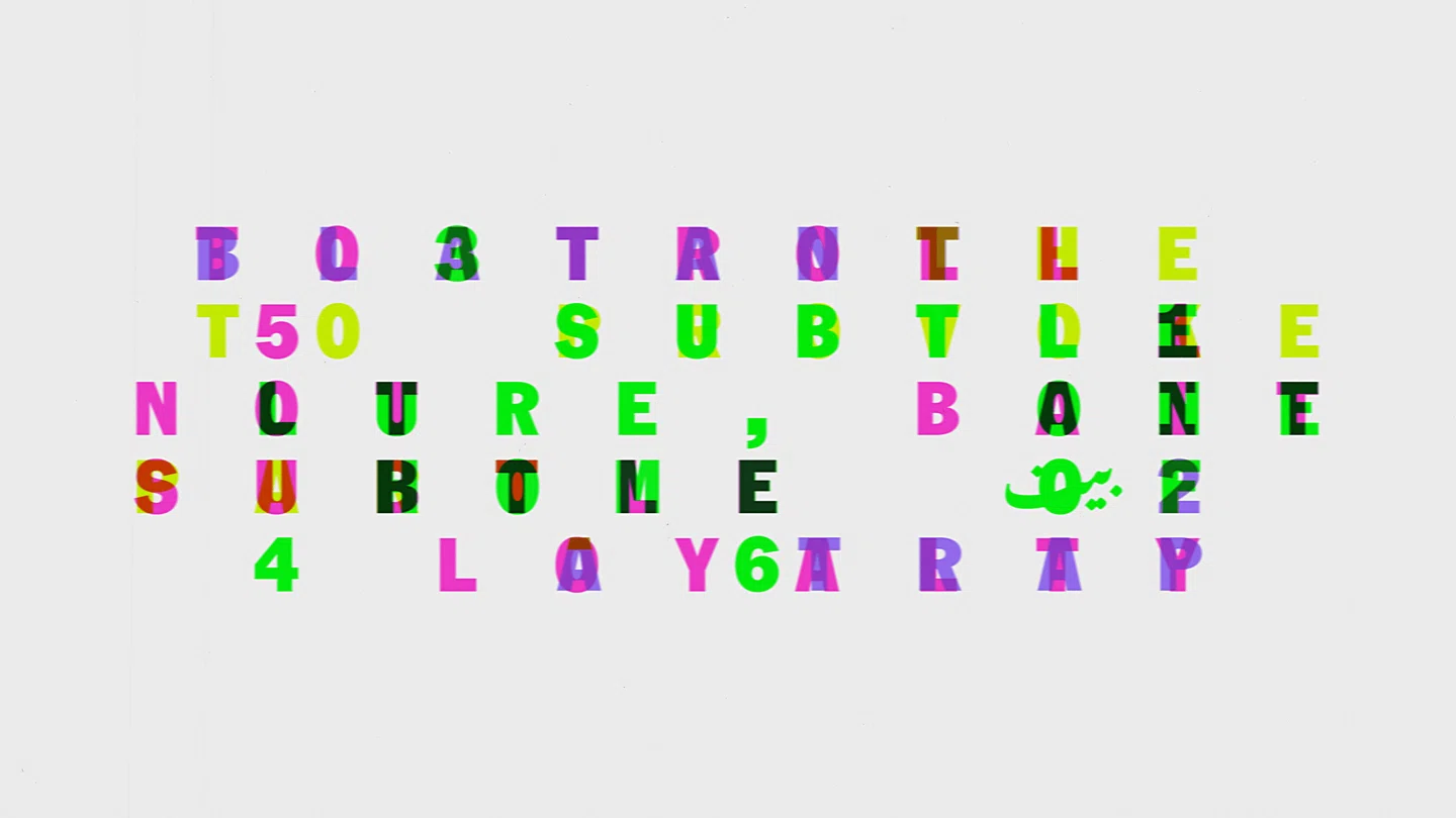Los socios de Pentagram, Luke Powell y Riz Ahmed, diseñaron la secuencia del título de su serie de Amazon Prime “Bait”, que cuenta la historia de un actor británico-paquistaní que hace una audición para el papel de James. Bond.该剧的自我虚构前提是基于分层的身份,设计师将这种多样性直接建构到类型中。 Una sola palabra en ABC Rom Mono tiene tres significados diferentes simultáneamente: uno en inglés, uno en urdu y otro en árabe, cada significado revelado u oculto a través de filtros de colores.