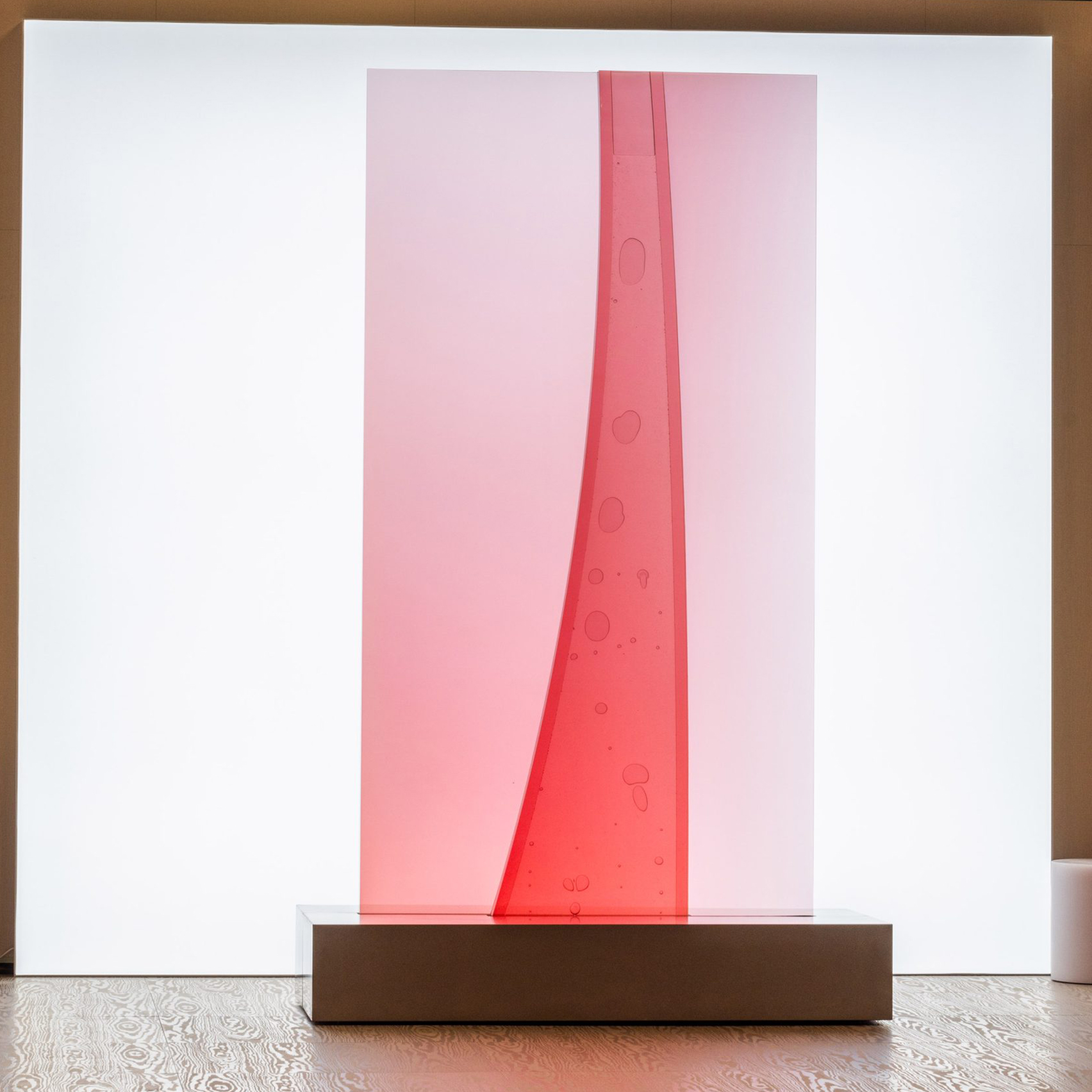 La única pieza de este resumen que es más arte que diseño, marcelisLas hermosas plumas de color rosa pálido, hechas de resina polimérica y aceite de silicona, exploran cómo el aire se mueve a través de los líquidos, creando formas relajantes y en constante cambio.