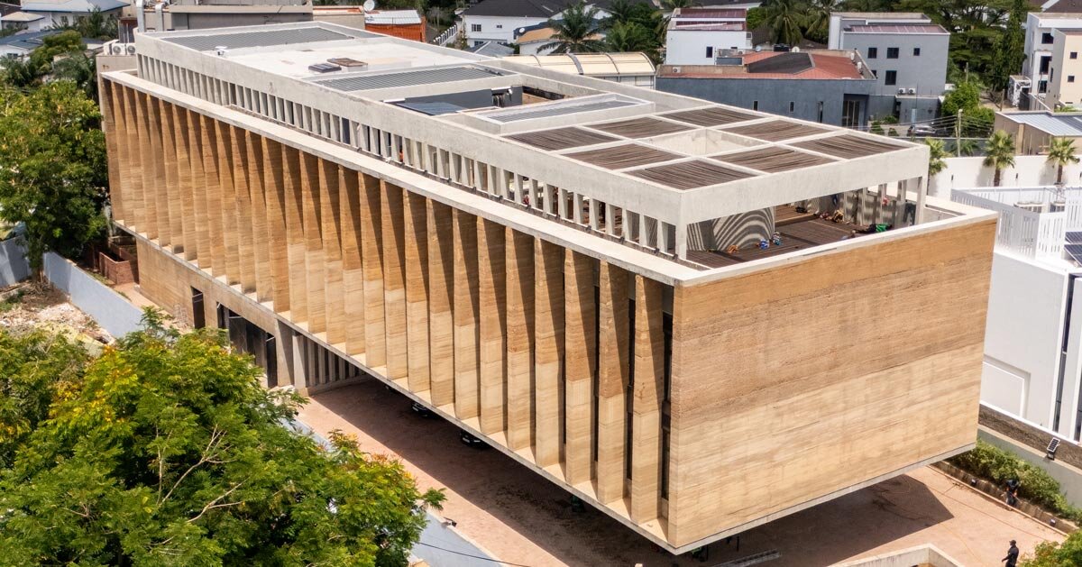 diseñado para ambos lugar de trabajo y declaración de construcción, nuevo Acra estudio asociados adjaye Definido por la estructura general. tierra apisonada y bajas emisiones de carbono específico. El edificio reúne oficinas, galerías y espacios compartidos en un único marco, posicionando el lugar de trabajo como un lugar de colaboración, rutina diaria y comunicación.