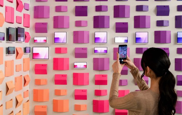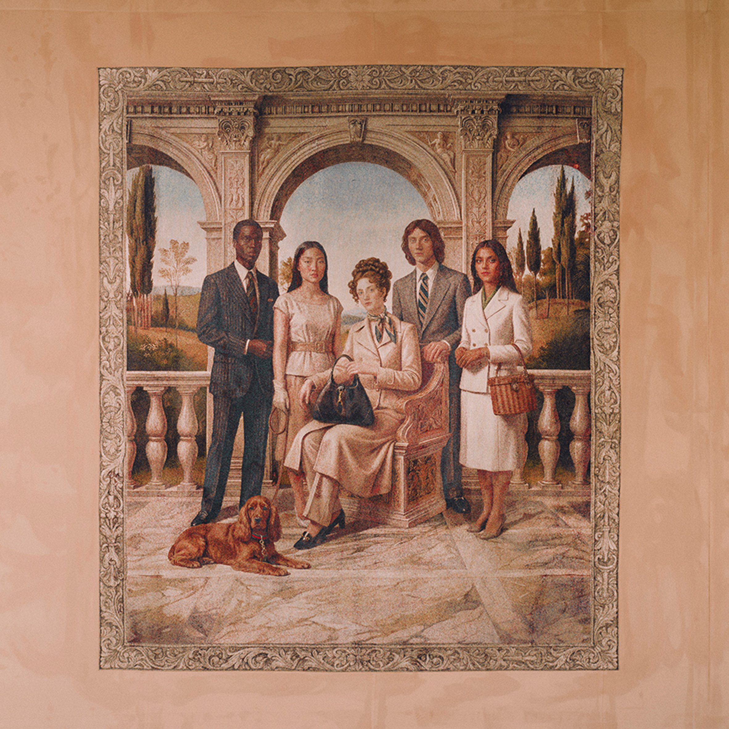 Una serie de tapices resaltan cada momento clave de la historia de Gucci a través de cambios de color, composición y ambientación, transportando a los visitantes al presente.