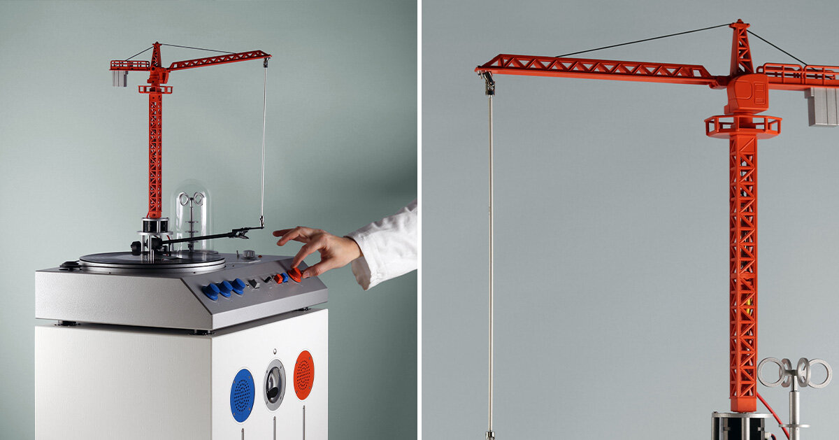 amor hulten Reimagine el tocadiscos como una máquina semiabsurda y deliberadamente sobreconstruida en la que los sonidos ya no sólo se reproducen, sino que actúan activamente. Encargado por Rebin Shah, pedazo El brazo tradicional se reemplaza por una grúa de color rojo brillante que navega físicamente por la superficie del vinilo, transformando el acto de escuchar en una operación táctil, casi teatral.