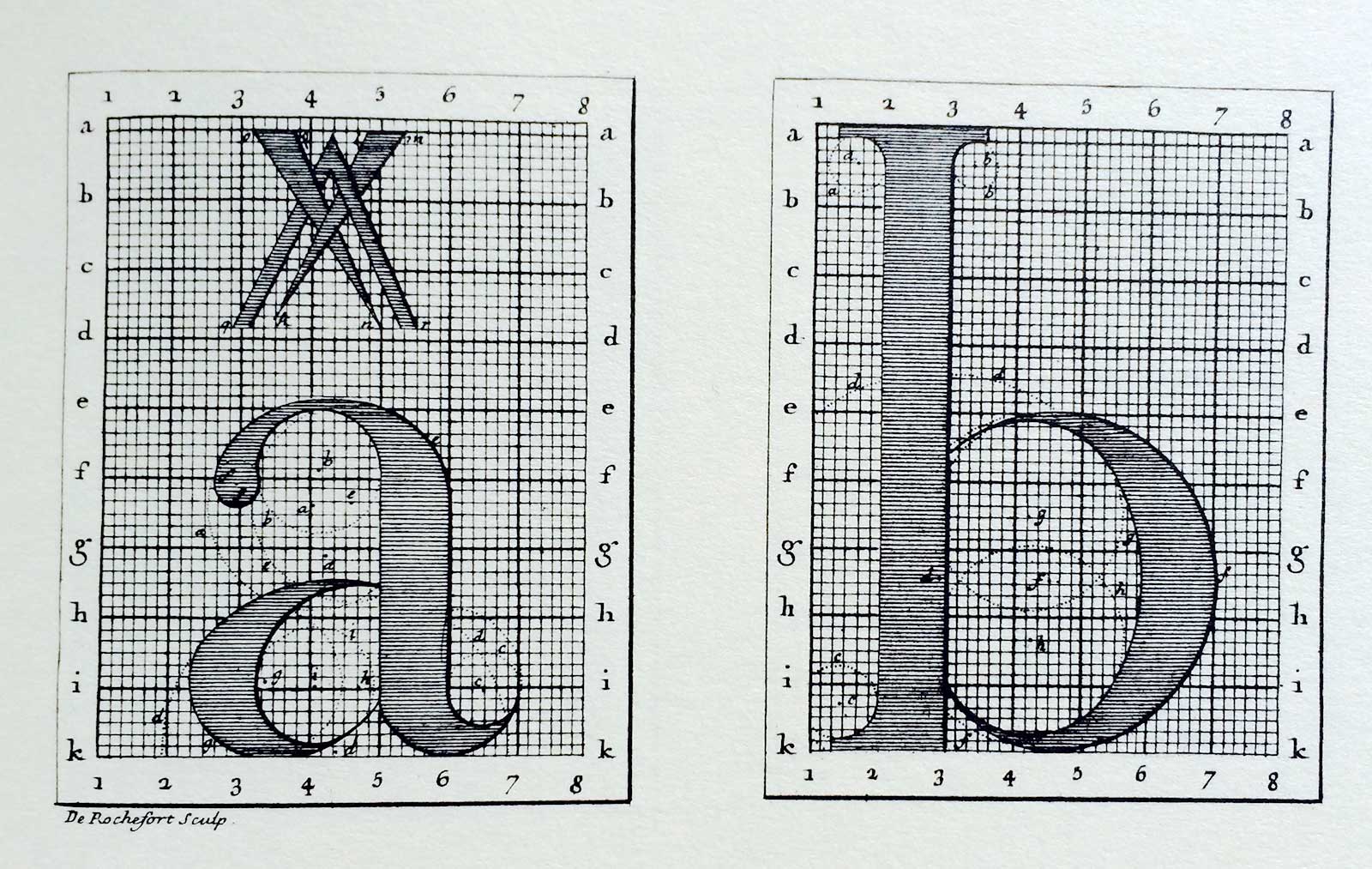 Encargado por el Rey Sol Luis XIV, Roma del rey (King Roman) es un tipo de fuente que sigue las fórmulas más complejas; cada curva, ángulo y serif se somete a complejos cálculos matemáticos. Pero al mismo tiempo Roma del rey Si bien se hicieron esfuerzos para perfeccionar la escritura romana mediante la racionalización matemática, no permitió que el proceso trascendiera por completo la forma y función de las letras mismas. en otras palabras, rey romano Los componentes de las formas de las letras estaban codificados, pero sus fórmulas simplemente describían una letra existente en lugar de inventarla.