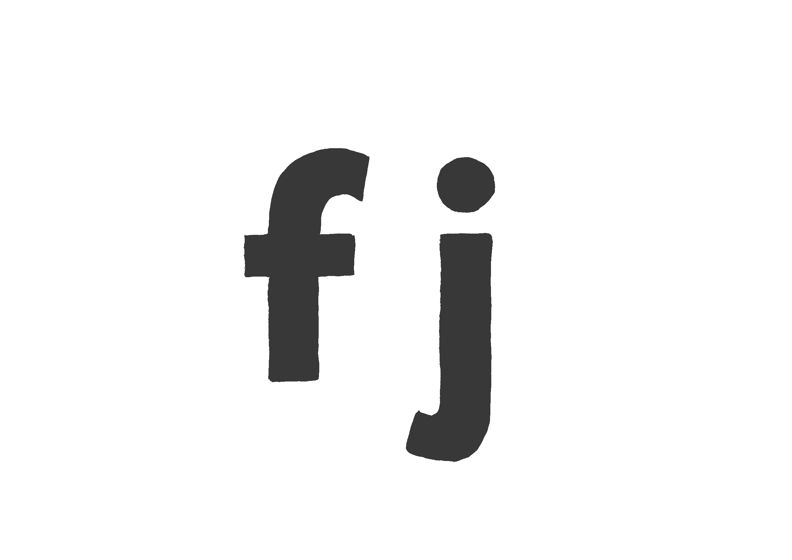 Las letras f y j no son gemelas Jekyll y Hyde, una es amable y recta, la otra está al revés y siniestra. En cambio, la f tiene una curvatura más generosa y hombros lo suficientemente anchos como para cubrir el ancho necesario de su travesaño. En comparación, j es más compacto y puede que ni siquiera sea tan alto. Son hermosos, concretos y familiares, incluso sin la retícula subyacente que nos asegure lo que son.