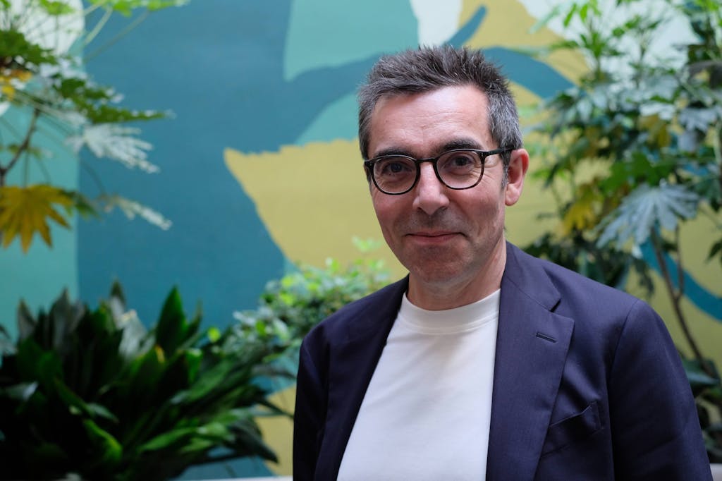 En un agradable día de primavera en Milán, en la soleada sala de exposición de Ethimo, me encontré frente a un espejo inexistente. Patrick Jouin y yo nos sentamos uno frente al otro, refrescándonos con jugo y vistiendo lo que sólo puede describirse como un uniforme: azul oscuro sobre una remera blanca impecable. Debido a nuestra edad y color de cabello similares, parecíamos menos entrevistador y entrevistado y más como un par de imitadores ligeramente confundidos.