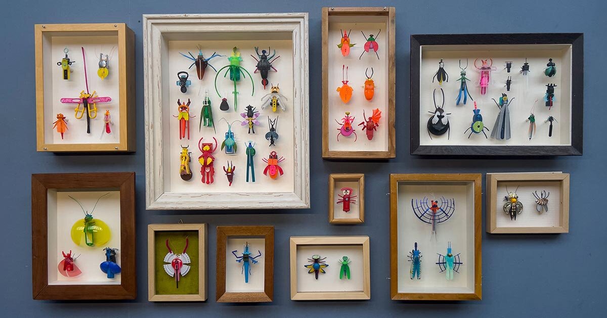 Los insectos de la basura transforman los desechos plásticos en frágiles esculturas de insectos