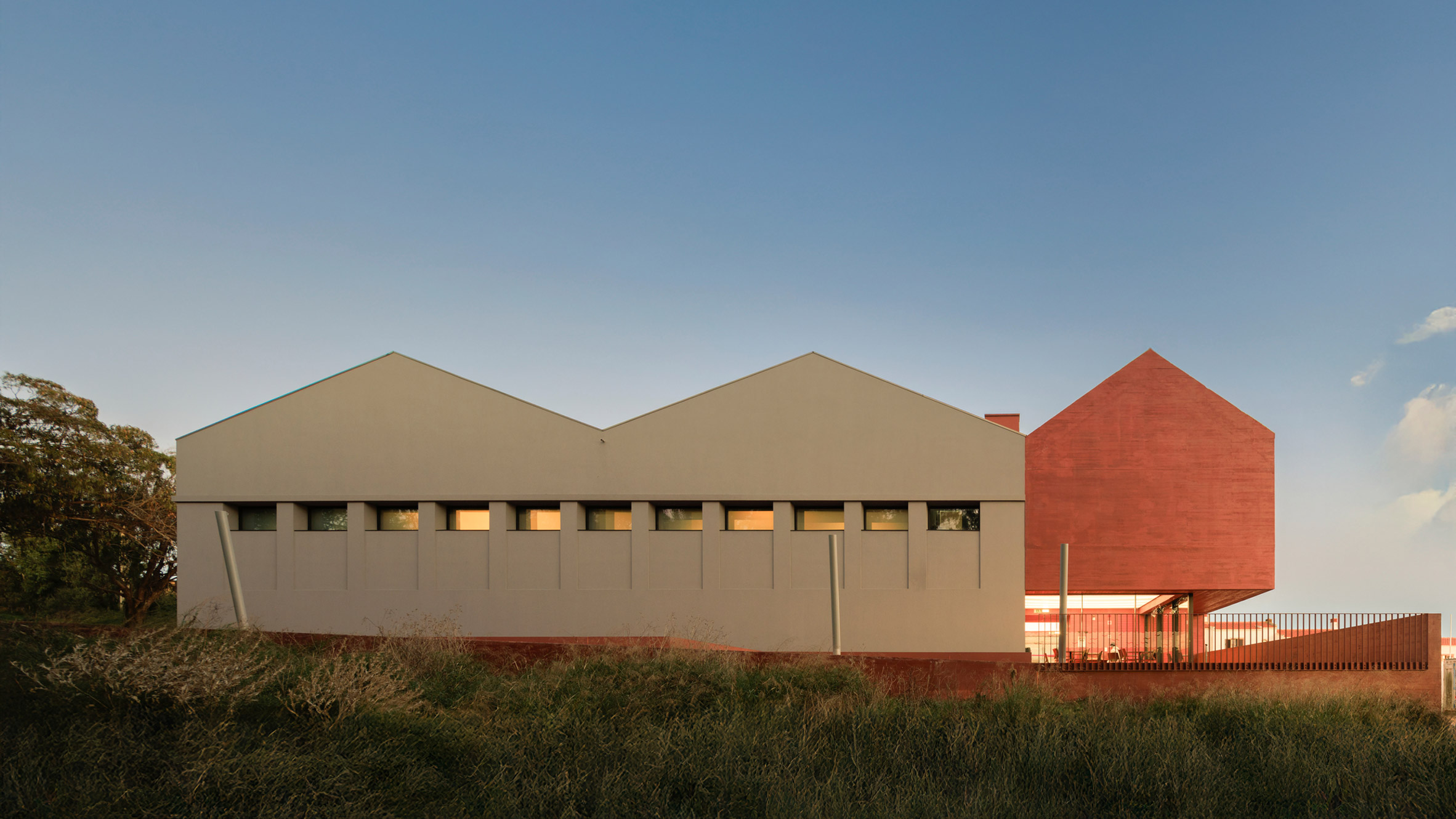 estudio de arquitectura trabajadores espaciales Museo de Vila do Bispo inaugurado en Portugalagrega uno nuevo hormigón rojo El volumen es un par de graneros reconvertidos.