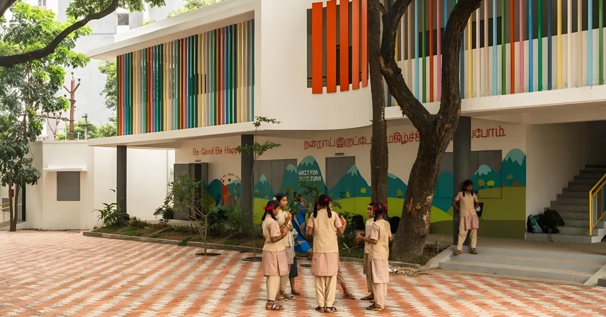 Ubicado en la densa zona residencial de Coimbatore, IndiaCon el tiempo, la Escuela Pública Kavundampalayam se ha convertido en una serie de áreas de aulas desconectadas. A pesar de albergar una gran proporción de las actividades diarias, los espacios entre ellos, corredores, vías de circulación y espacios residuales siguen siendo subutilizados. este decoración El plan de Mawi Design reinventa estas áreas intermedias como partes integrales del entorno de aprendizaje, reorganizando el campus en torno al movimiento, la interacción y el uso informal.