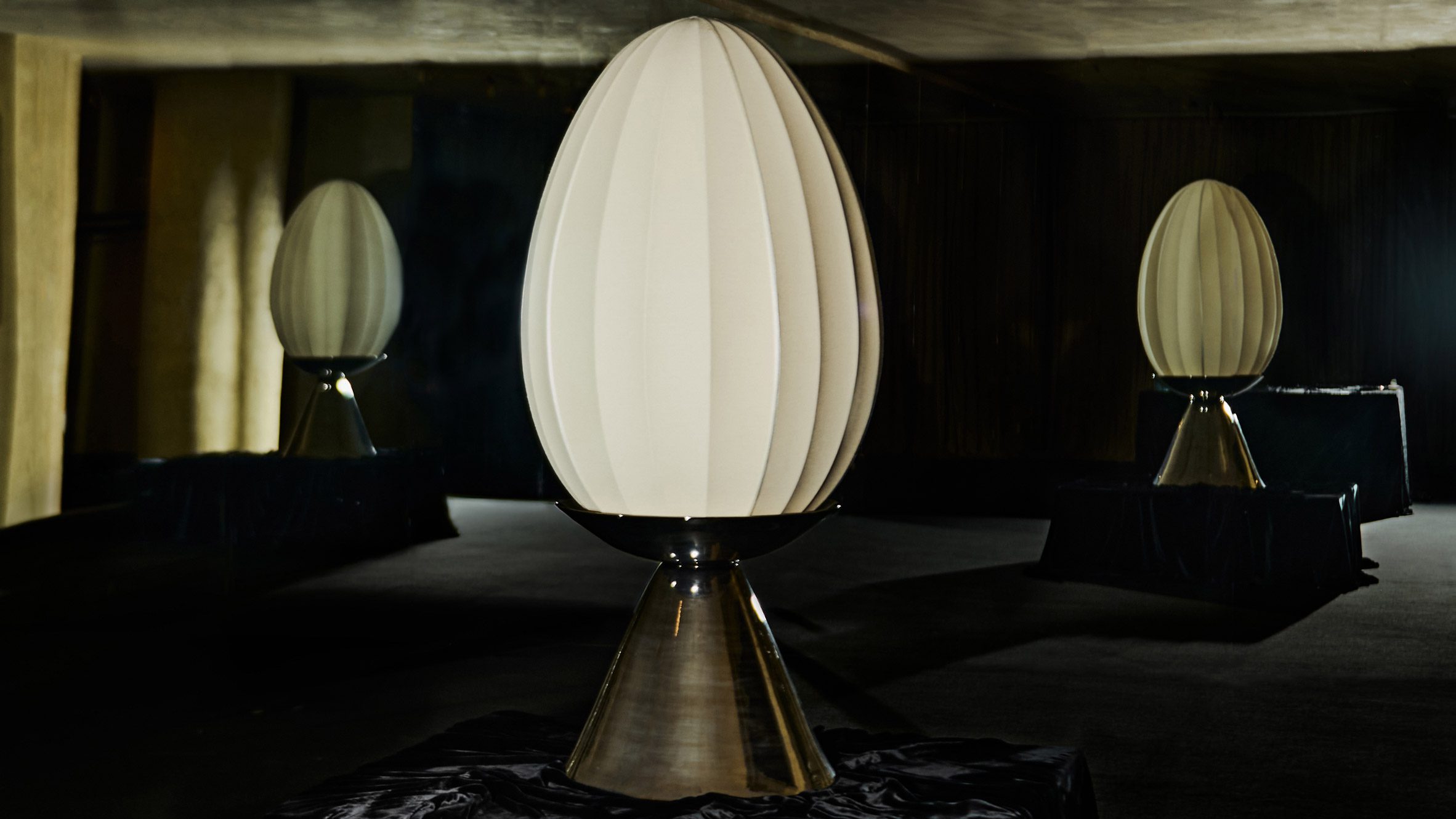 Si bien el cromo brillante sigue siendo el material dominante, sus formas ahora recuerdan a extraterrestres con esqueletos metálicos o robots increíbles, como se ve en el trabajo de Bethan Laura Wood. Portavelas Mille Fleurs Baccarat, que combina cables de acero flotantes con elementos de vidrio apilados que se asemejan a ojos de robot.