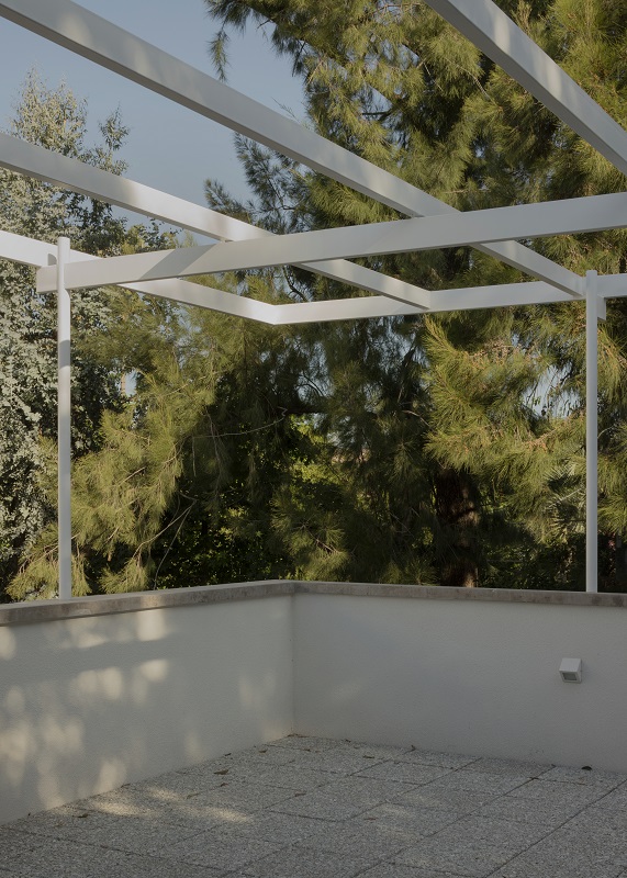 Un joven matrimonio decidió instalarse en un terreno esquinero en Celaya, provincia de Buenos Aires. Los árboles viejos forman una de las principales cualidades del terreno. La planta arquitectónica organiza el espacio en dos niveles: la terraza superior recupera la planta baja y convierte a los pinos y eucaliptos en protagonistas.
