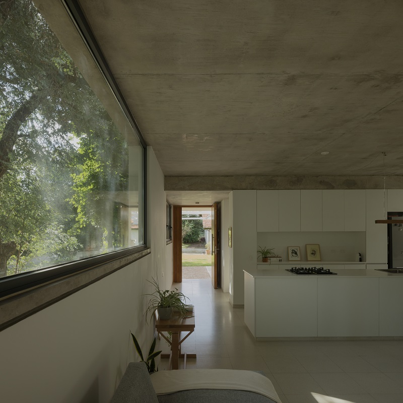 Los marcos se generan a través de las ventanas, enmarcando el verdor de la vegetación existente y algunas vistas hacia campos abiertos. Las ventanas corredizas incorporadas crean una buena conexión con el exterior, permitiendo que la planta baja se expanda hacia el área principal del terreno.