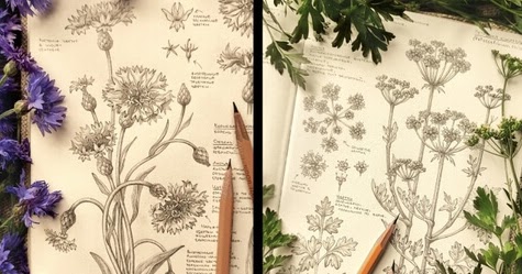 Páginas seleccionadas de diario y cuaderno de bocetos llenas de belleza. planta Dibujos y maravillosas anotaciones. Vlada Repina Pintó todo