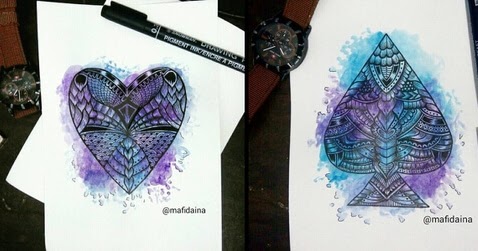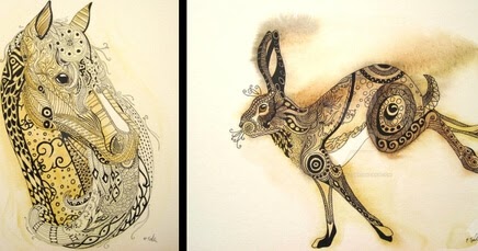 Dibujo de tinta de animal zentangle y pintura de acuarela
