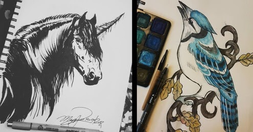 Dibujos de animales de tinta y lápiz
