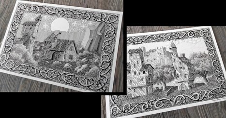 Alta calidad– Una fantasía impresionante arquitectura dibujo. Artista polaco Wojciech Baran Todos los edificios se dibujan en esta página. La