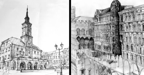 Dibujos con tinta de animales y acuarelas.
