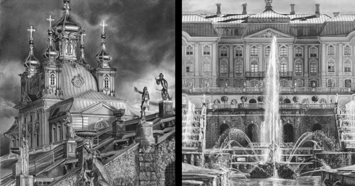 Actual Dibujos de lápiz arquitectura y celebridad. Artista polaco Anna Katarzyna Stankiewicz AKA Artredray dibuja todas las imágenes en esta