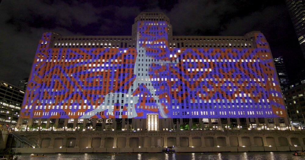 Una malla metálica translúcida envuelve las puertas de MARS Studio, haciéndose eco de las montañas y los mares de China.