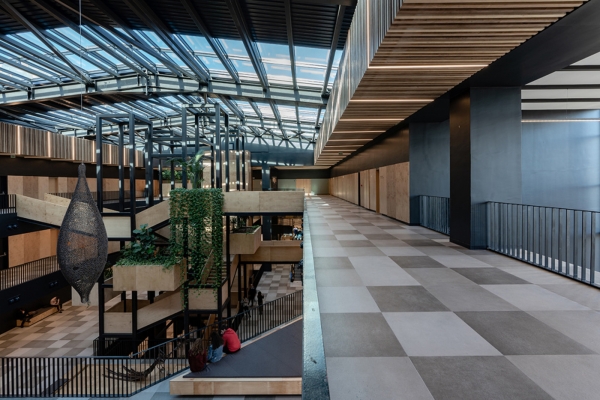 El diseño del escenario de Dany Vo combina gráficos y tipografía de movimiento En el reciente Congreso de Aveda pista