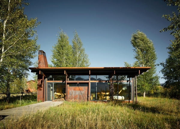 El garaje agrega óxido de acero con óxido de acero que coincide con el resto de la estética de meteorización