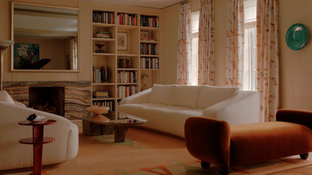 El bar cuenta con un mostrador de roble con tapa de mármol Calacatta Valgi en lo que alguna vez fue un rellano inusualmente espacioso en la planta baja. "No pertenece a nada", dijo de Cárdenas. "Así que les propusimos...