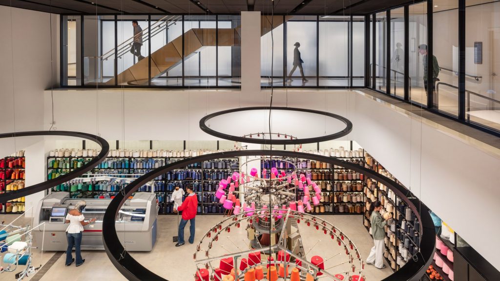 estudio americano arquitecto de tienda Edificio académico terminado para el Fashion Institute of Technology ciudad de nueva york Contiene un laboratorio de costura subterráneo visible desde la calle y un atrio trasero conectado a los edificios adyacentes. El edificio académico...