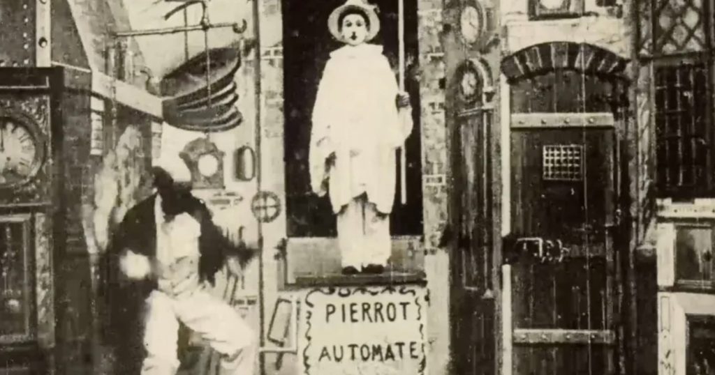 Fotograma de "Crugus y los autómatas" que muestra al mago y su robot Pierrot | Crédito de la foto: Centro Nacional para la Preservación de Audiovisuales/Biblioteca del Congreso Una película del siglo XIX perdida hace mucho tiempo que se...