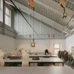 Los tonos de las superficies de terrazo cambian a lo largo del plano, mientras que la iluminación enfatiza las transiciones materiales y la profundidad espacial, enfatizando la progresión desde el interior cerrado hasta el volumen extendido totalmente acristalado.