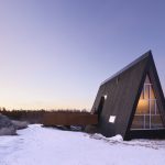 Encaramado sobre el dosel del bosque en Golden, Columbia Británica, Canadá Plataforma de observación de la garganta del río Columbia es una sorprendente cabaña moderna Estudio de arquitectura Twobytwo.. Convierta la simplicidad en una cómoda forma...