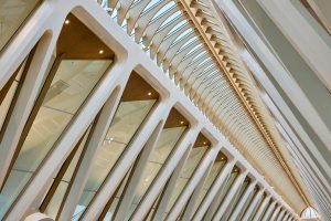 La luz natural juega un papel central en el diseño. Claraboyas operables corren a lo largo del eje del techo y las galerías están acristaladas para aprovechar la luz del día, una marca registrada de Calatrava.