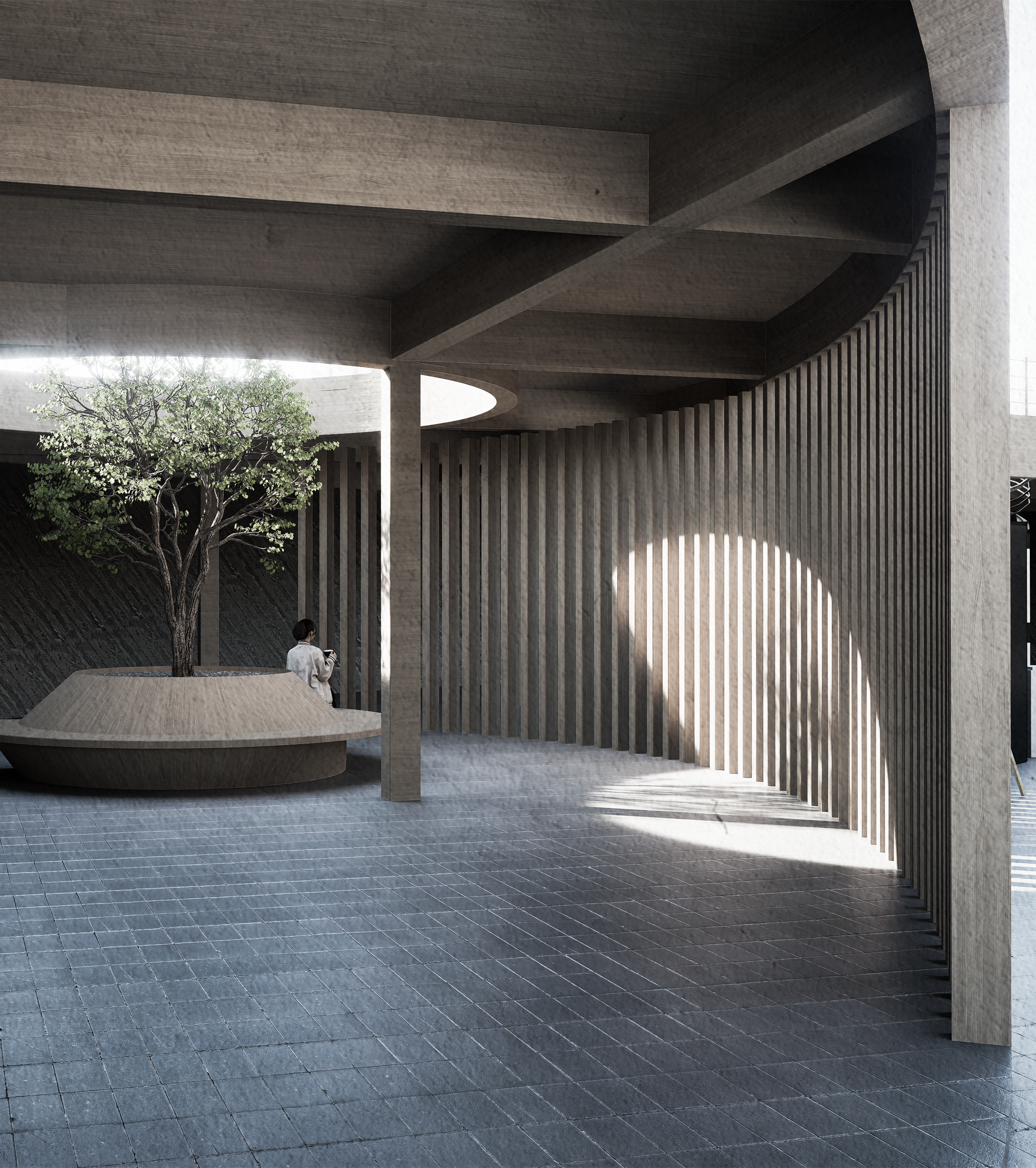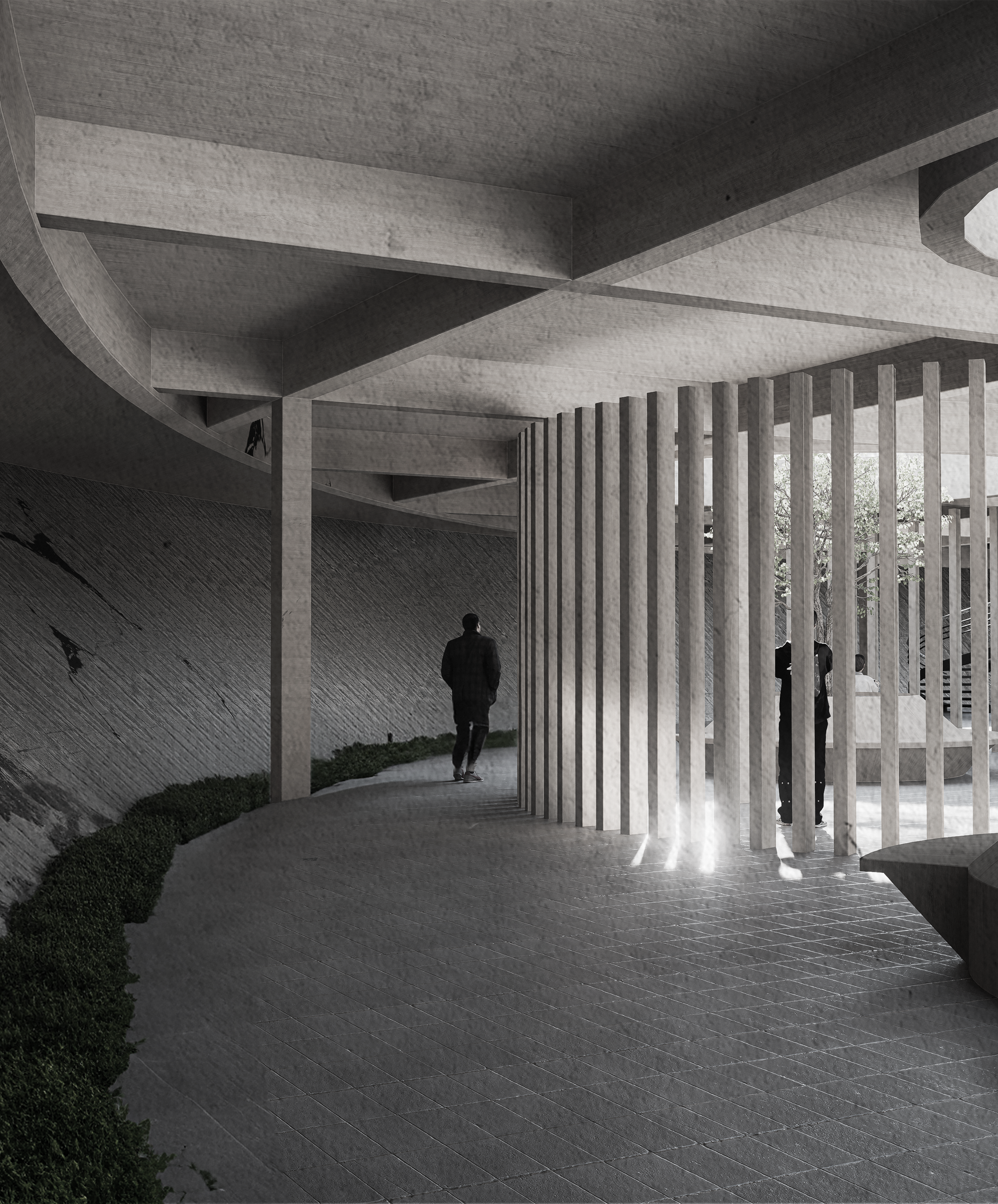 Materialidad como Narrativa: La propuesta utiliza el hormigón visto como elemento unificador del discurso arquitectónico. Su textura y plasticidad se manifiestan tanto en los planos horizontales (pisos, techos) como en los elementos estructurales y divisorios. Esta continuidad material crea un diálogo constante entre: La expresión tectónica del material El control lumínico mediante elementos verticales La percepción de peso y ligereza