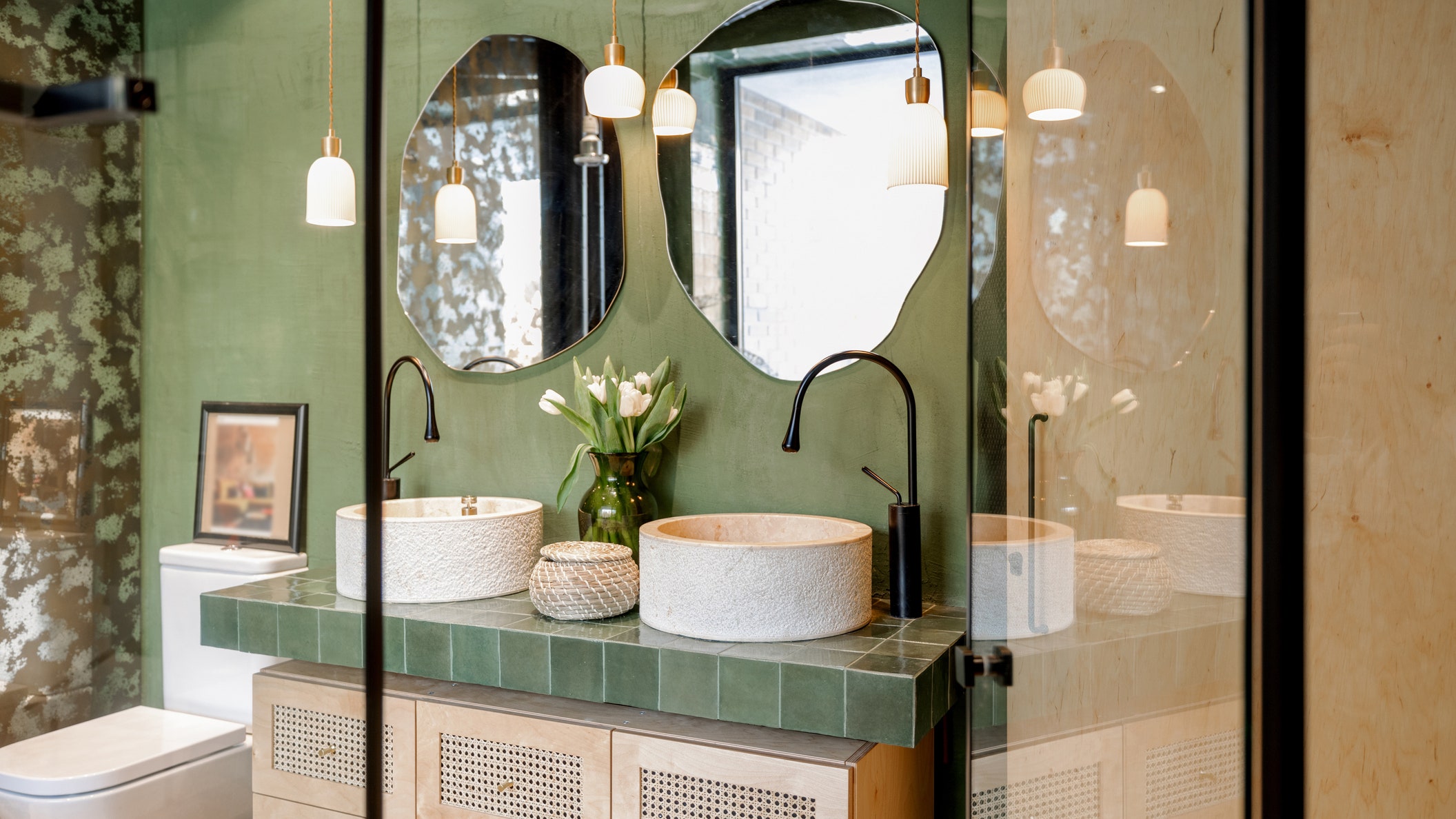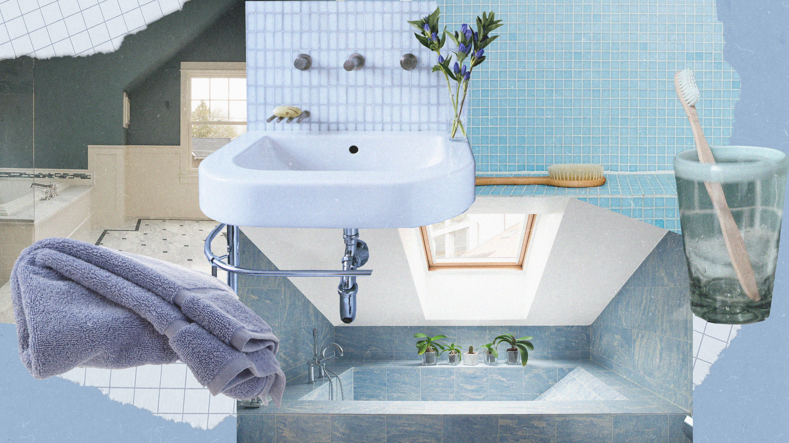 20 ideas de baños azules, desde papeles pintados súper divertidos hasta azulejos hexagonales de mal humor