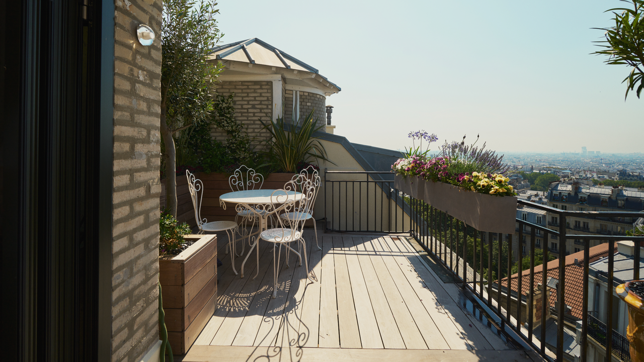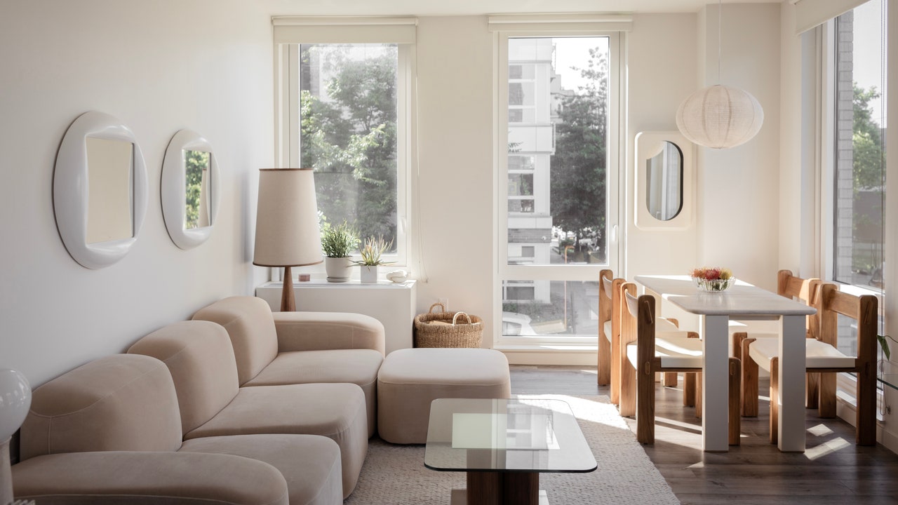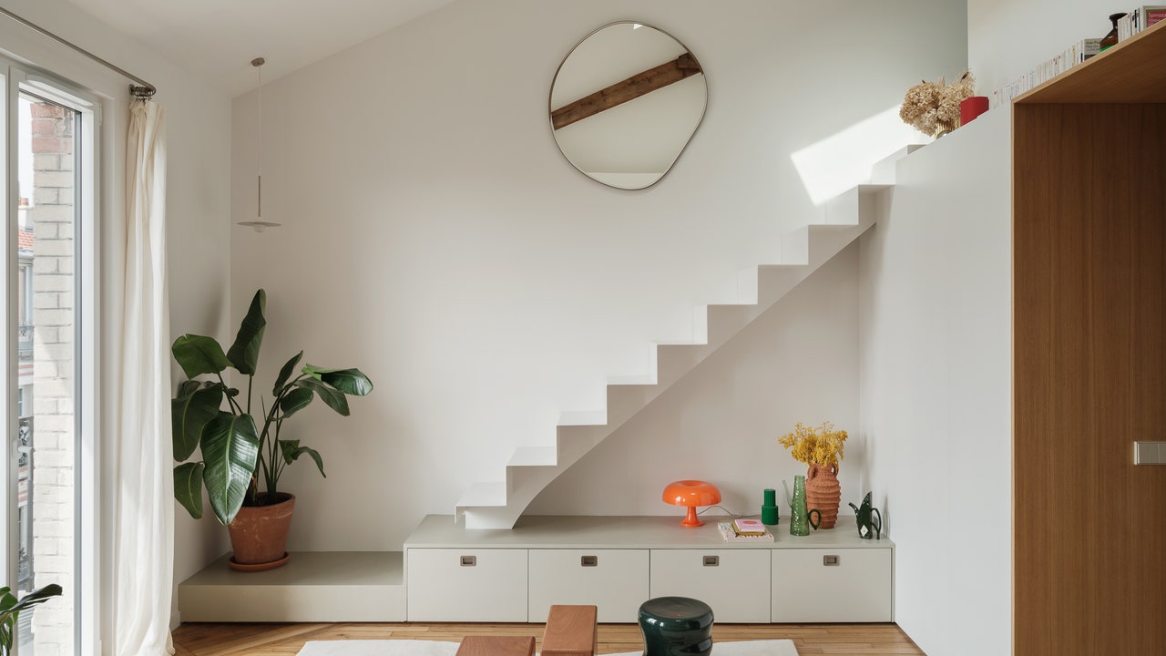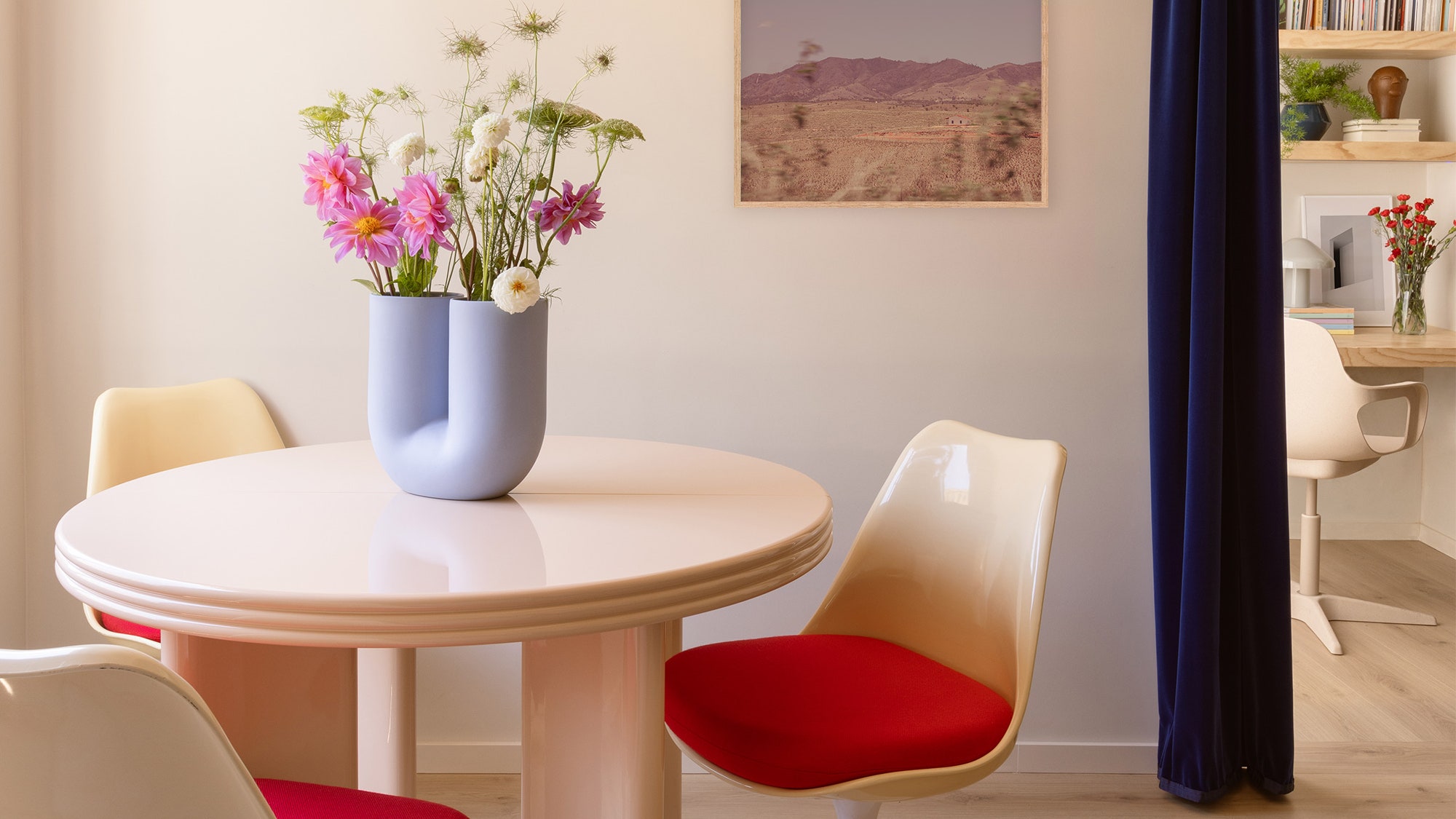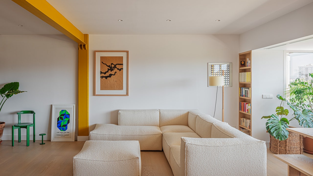 Mientras tanto, los muebles más pesados y las obras de arte gráficas crean una sensación de conexión a tierra en
