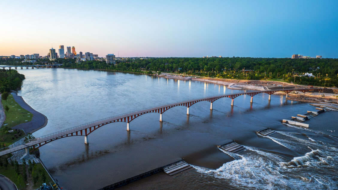 El puente Williams cruza el río Arkansas y es el primer puente de arco de placa de acero en los Estados Unidos.